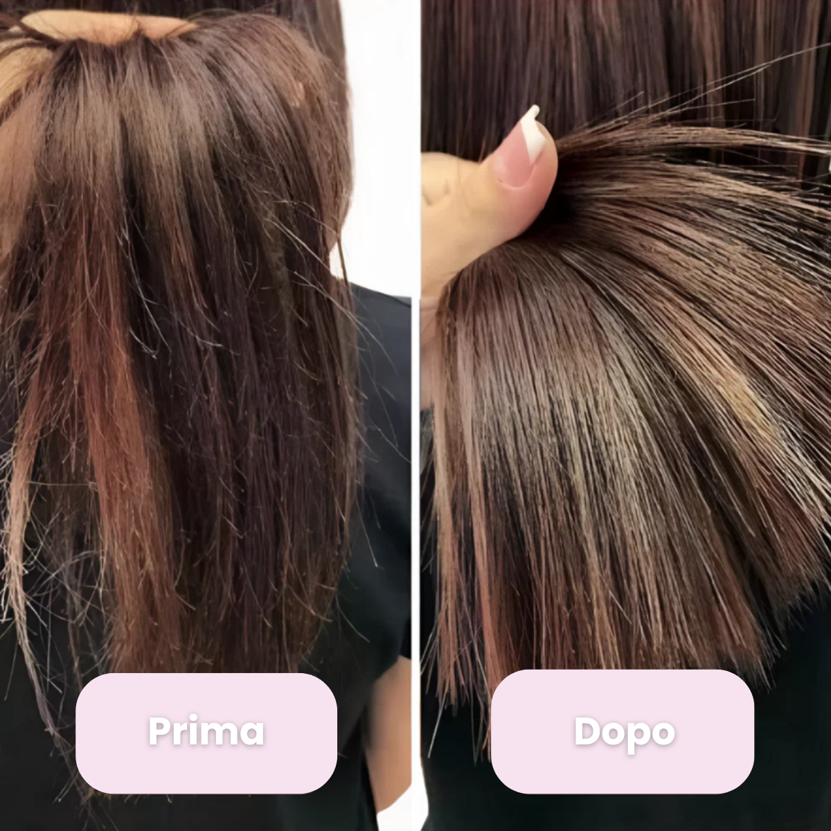 "Giuro, pensavo che questa sarebbe stata un'altra bufala su Instagram. Ma l'ho usato una volta e WOW. Le doppie punte scomparvero, la lunghezza intatta e i capelli super morbidi. Non c'è trucco, funziona davvero. Anche mia sorella glielo ha chiesto dopo avermi visto 😅"